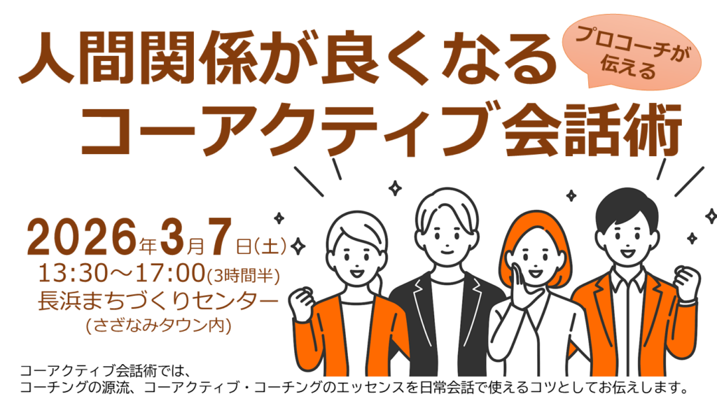 「人間関係がよくなるコーアクティブ会話術」を2026年3月7日に、滋賀県長浜市で開催します。